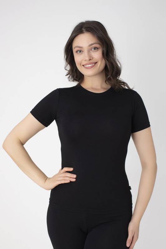 Kadın Modal Bisiklet Yaka T-shırt C801-019