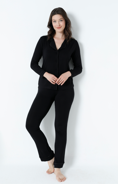 Kadın Önü Düğmeli Uzunkol Pijama Takım C840-444