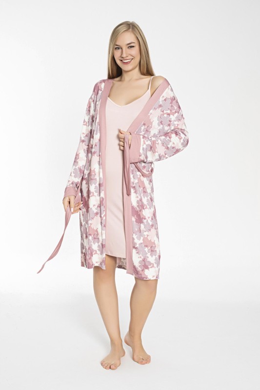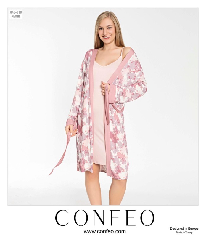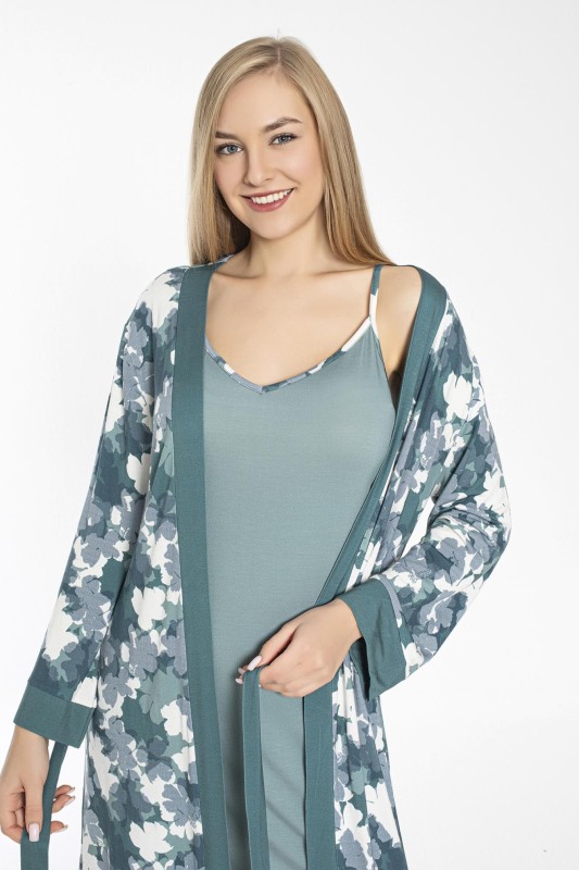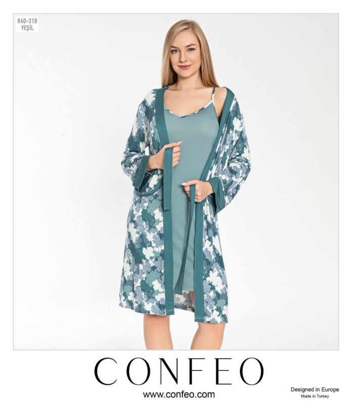 KADIN İP ASKILI GECELİK SABAHLIK TAKIM C840-318, viskon kumaşı ile terlemeyi önleyen ve cildinize nazikçe dokunan gecelik modelimizdir. Tüm gece boyunca rahat bir uyku sağlar. Çevre dostu ve sürdürülebilir özelliklere sahip olup, her yaş grubuna hitap eder.