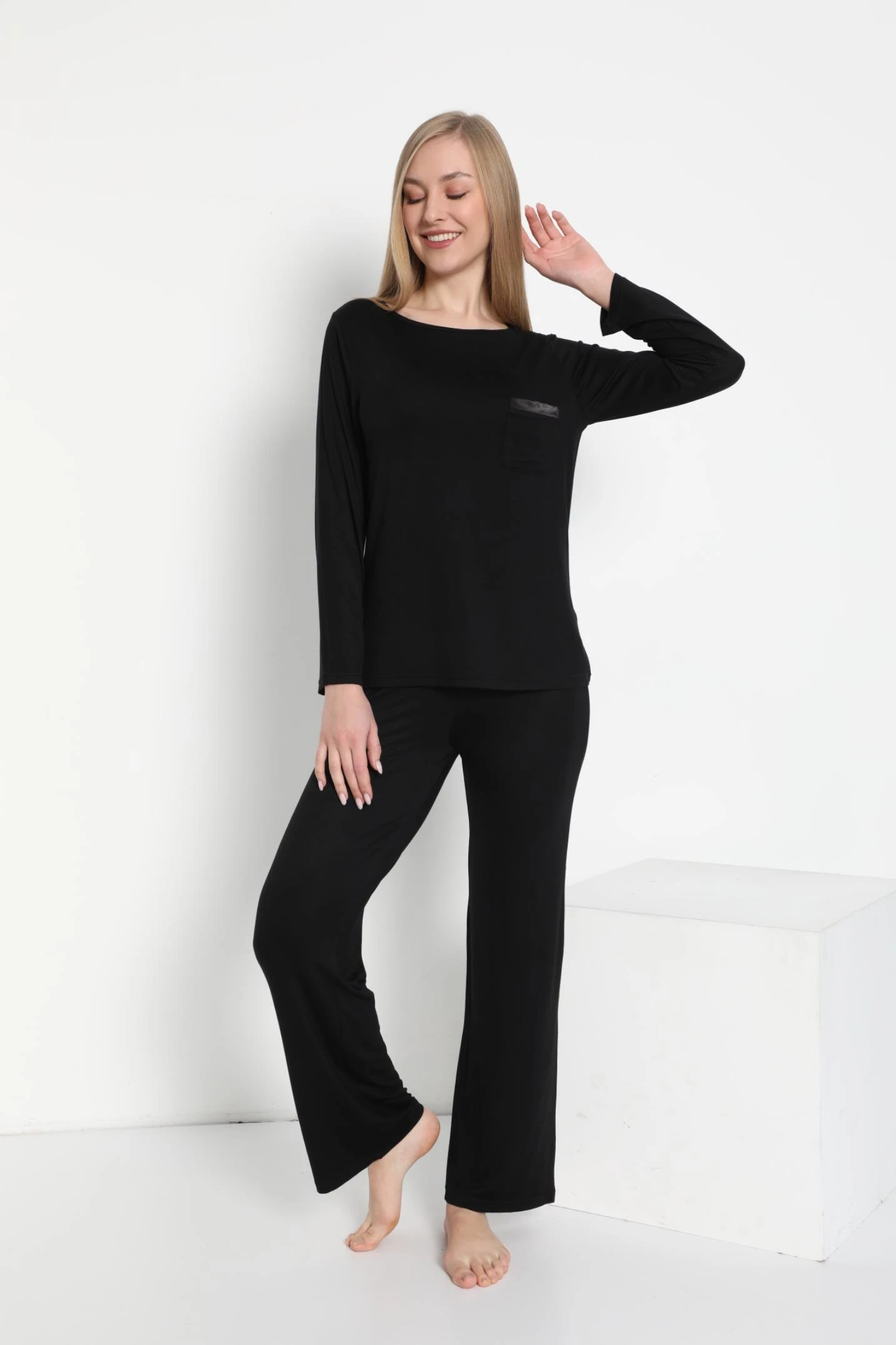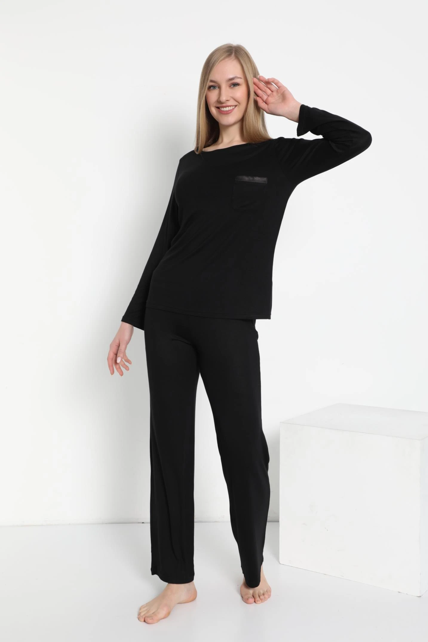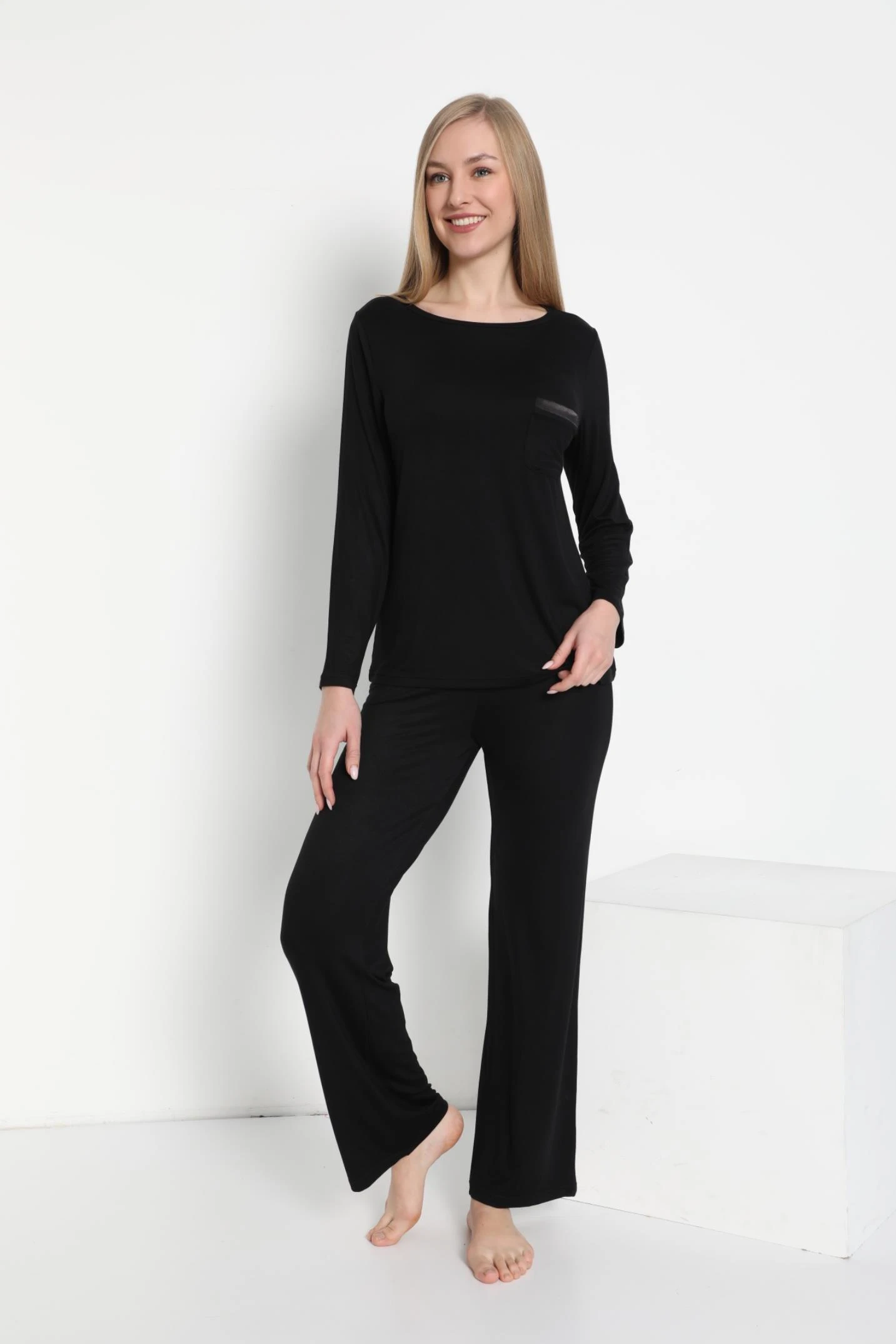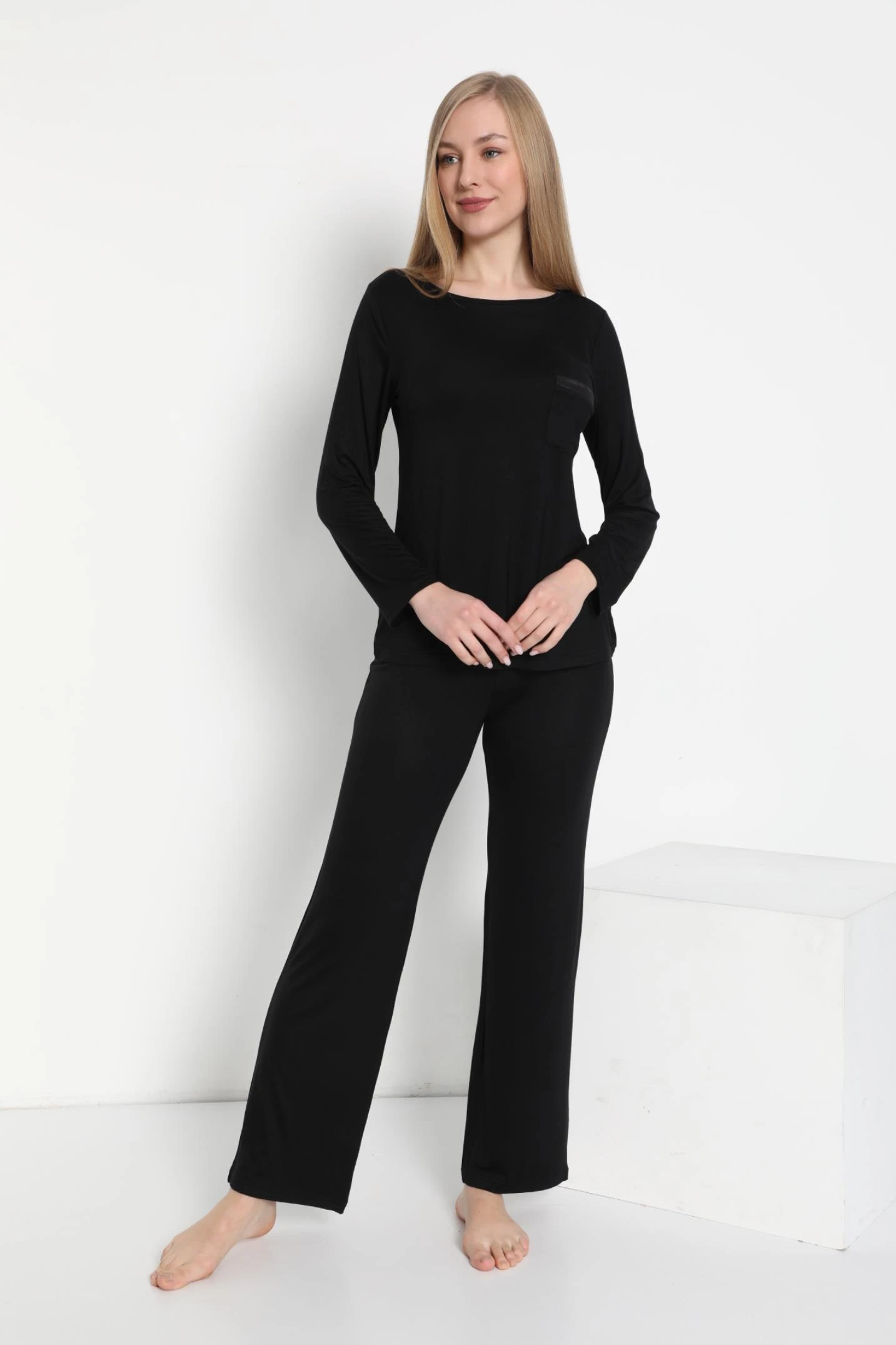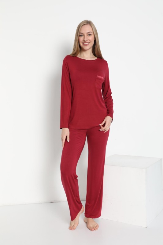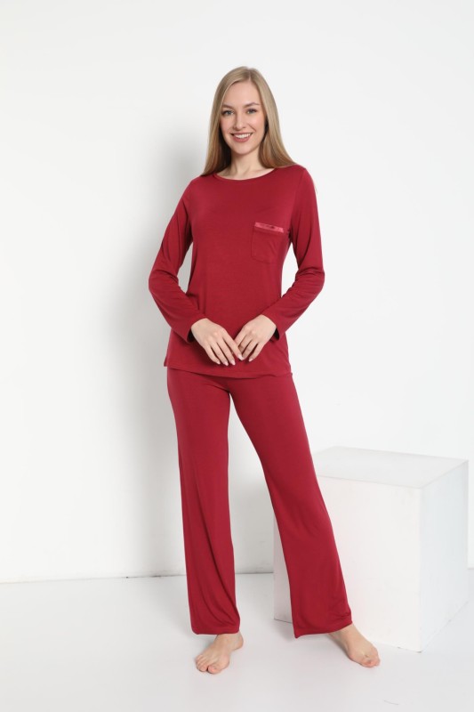 KADIN VİSKON SATEN BİYELİ BİSİKLET YAKA UZUNKOL PİJAMA C840-539