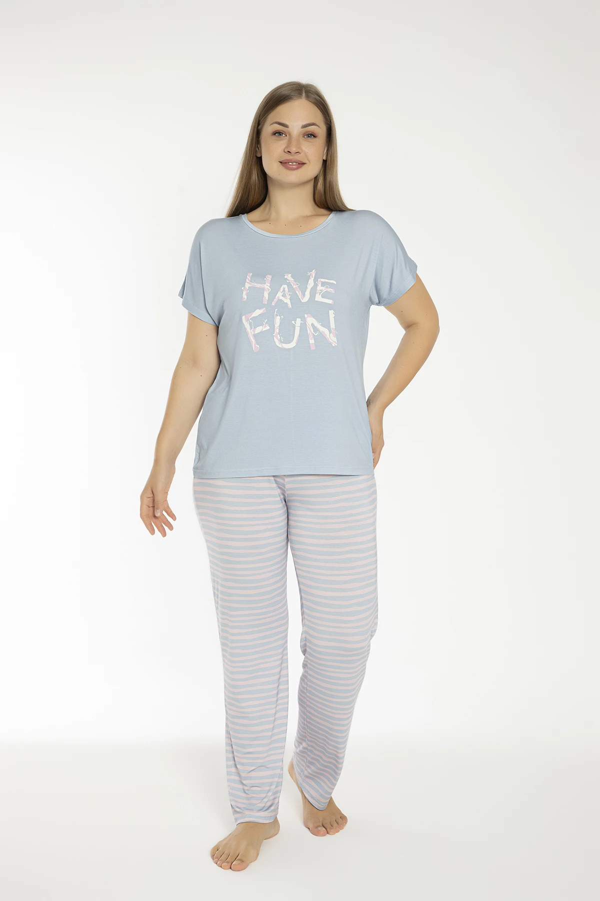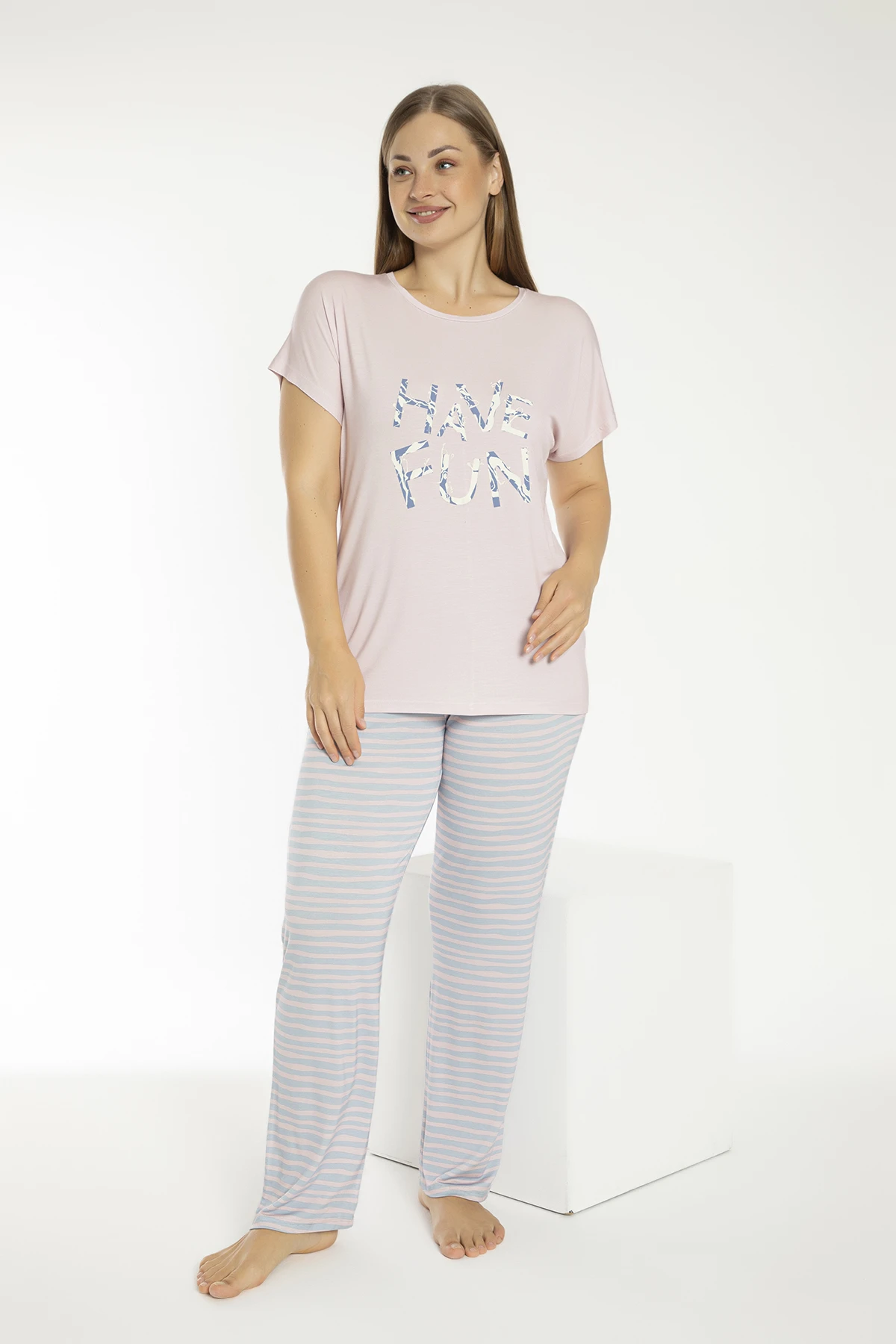 Kadın Büyük Beden Viscon Kısakol Çizgili Pijama Takımı C840-775