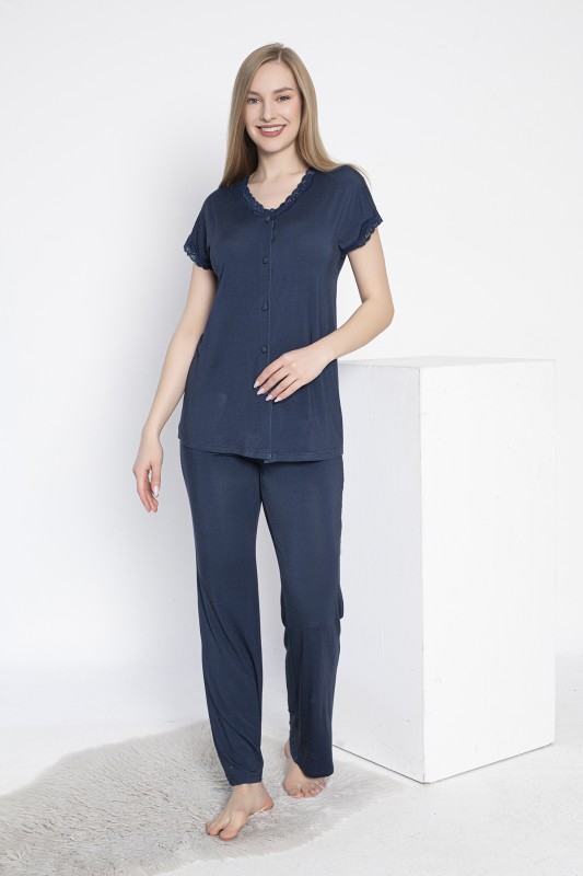 Kadın Önü Düğmeli Dantelli Pijama Takımı C840-787