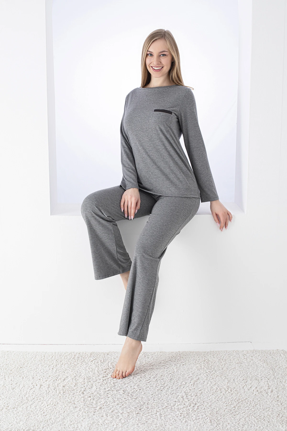 Kadın Uzunkol Antrasit Pijama Takımı C840-526
