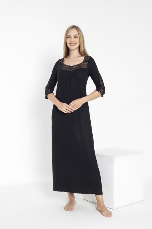 Kadın Yarımkol Dantellili Uzun Boy Gecelik Ev Elbisesi C840-814